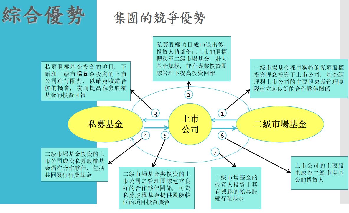 - 集團建立運作暢順的對沖基金投資平,業務合作的投資銀行包括摩根大通、中國銀行、渣打銀行等等。